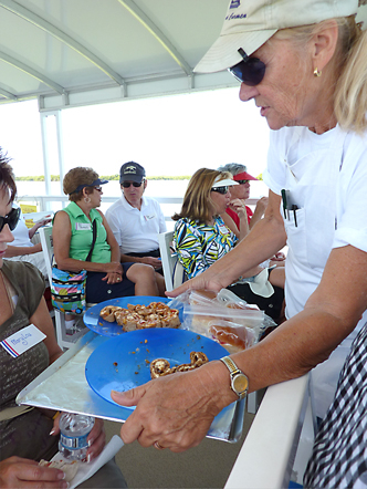 Carolyn and Augie Fischer started passing out food and drink before the boat left the dock and continued all through the trip. Thank you Carolyn for that and arranging the trip with Theresa.